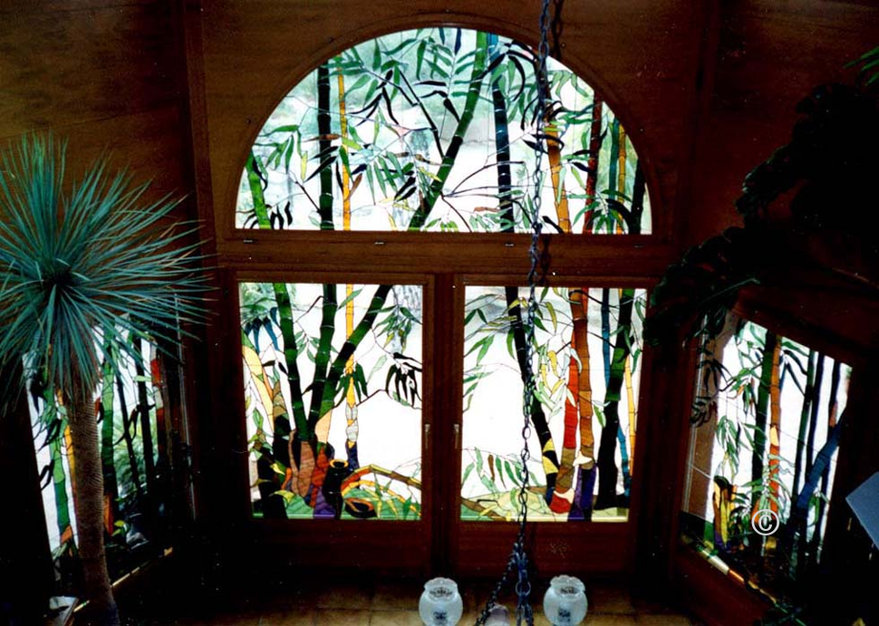 Kundry Farbglasfenster mit Bambusmotiv Höhe ca. 280 cm Bleiverglasung