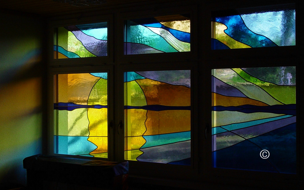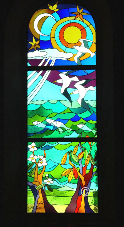 Kundry "die Schöpfung" Kirchenfenster in Raperswilen Kanton Thurgau 100x230 cm Bleiverglasung